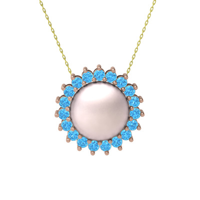 Pembe inci ve akuamarin 18 ayar rose altın kolye (40 cm altın rolo zincir)