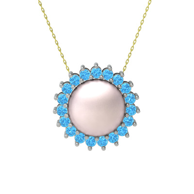 Pembe inci ve akuamarin 8 ayar beyaz altın kolye (40 cm altın rolo zincir)