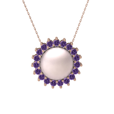 Pembe inci ve ametist 18 ayar rose altın kolye (40 cm rose altın rolo zincir)