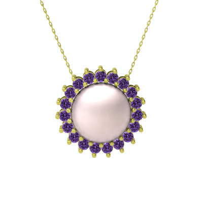 Pembe inci ve ametist 925 ayar altın kaplama gümüş kolye (40 cm altın rolo zincir)