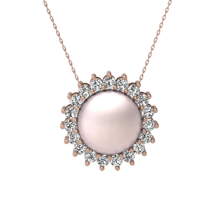 Pembe inci ve beyaz zirkon 14 ayar rose altın kolye (40 cm gümüş rolo zincir)