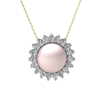 Pembe inci ve beyaz zirkon 18 ayar beyaz altın kolye (40 cm altın rolo zincir)