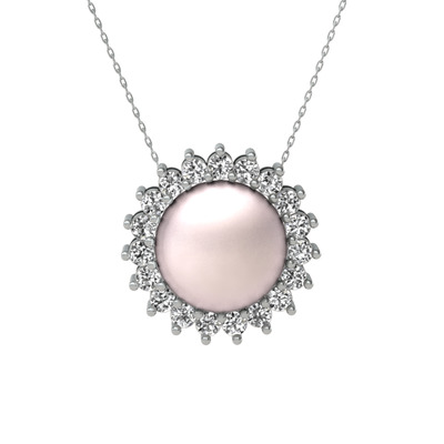 Pembe inci ve beyaz zirkon 925 ayar gümüş kolye (40 cm beyaz altın rolo zincir)