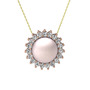 Pembe inci ve beyaz zirkon 925 ayar rose altın kaplama gümüş kolye (40 cm altın rolo zincir)