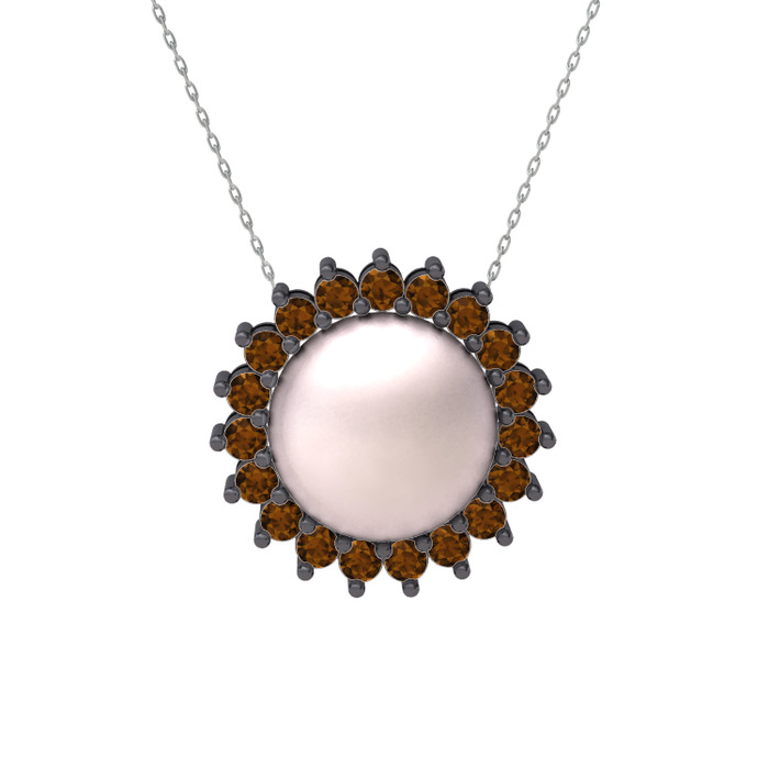 Pembe inci ve dumanlı kuvars 925 ayar siyah rodyum kaplama gümüş kolye (40 cm beyaz altın rolo zincir)