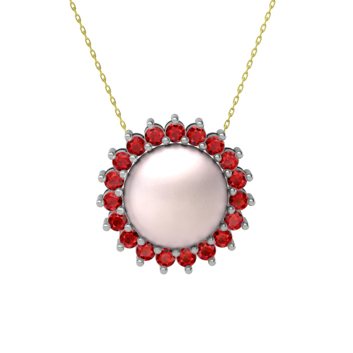 Pembe inci ve garnet 8 ayar beyaz altın kolye (40 cm altın rolo zincir)