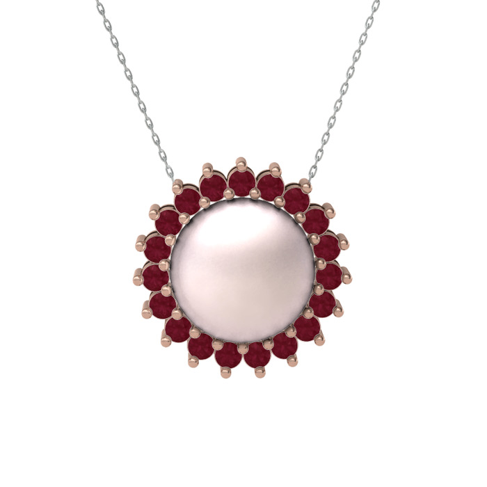 Pembe inci ve kök yakut 14 ayar rose altın kolye (40 cm beyaz altın rolo zincir)