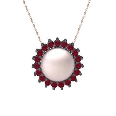 Pembe inci ve kök yakut 925 ayar siyah rodyum kaplama gümüş kolye (40 cm rose altın rolo zincir)