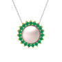 Pembe inci ve kök zümrüt 14 ayar altın kolye (40 cm beyaz altın rolo zincir)