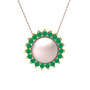 Pembe inci ve kök zümrüt 14 ayar altın kolye (40 cm gümüş rolo zincir)