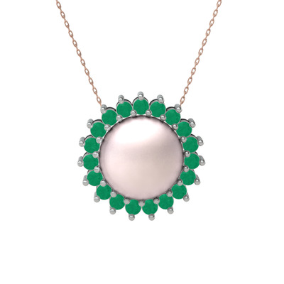 Pembe inci ve kök zümrüt 14 ayar beyaz altın kolye (40 cm rose altın rolo zincir)