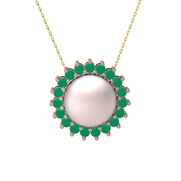 Pembe inci ve kök zümrüt 14 ayar rose altın kolye (40 cm gümüş rolo zincir)