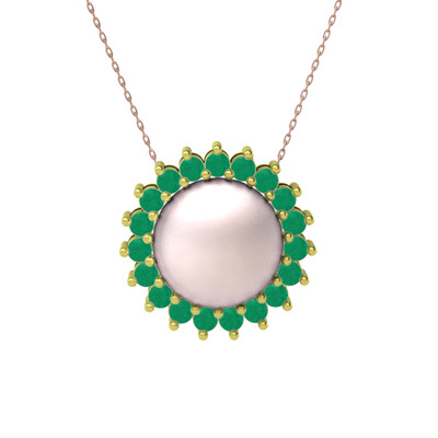 Pembe inci ve kök zümrüt 18 ayar altın kolye (40 cm rose altın rolo zincir)