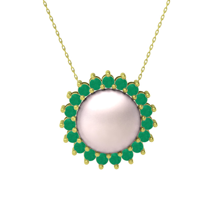 Pembe inci ve kök zümrüt 8 ayar altın kolye (40 cm altın rolo zincir)