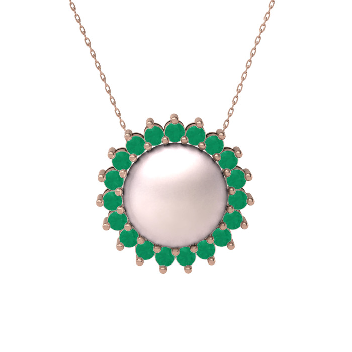 Pembe inci ve kök zümrüt 8 ayar rose altın kolye (40 cm rose altın rolo zincir)