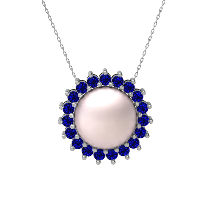 Pembe inci ve lab safir 925 ayar gümüş kolye (40 cm beyaz altın rolo zincir)