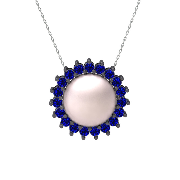 Pembe inci ve lab safir 925 ayar siyah rodyum kaplama gümüş kolye (40 cm beyaz altın rolo zincir)