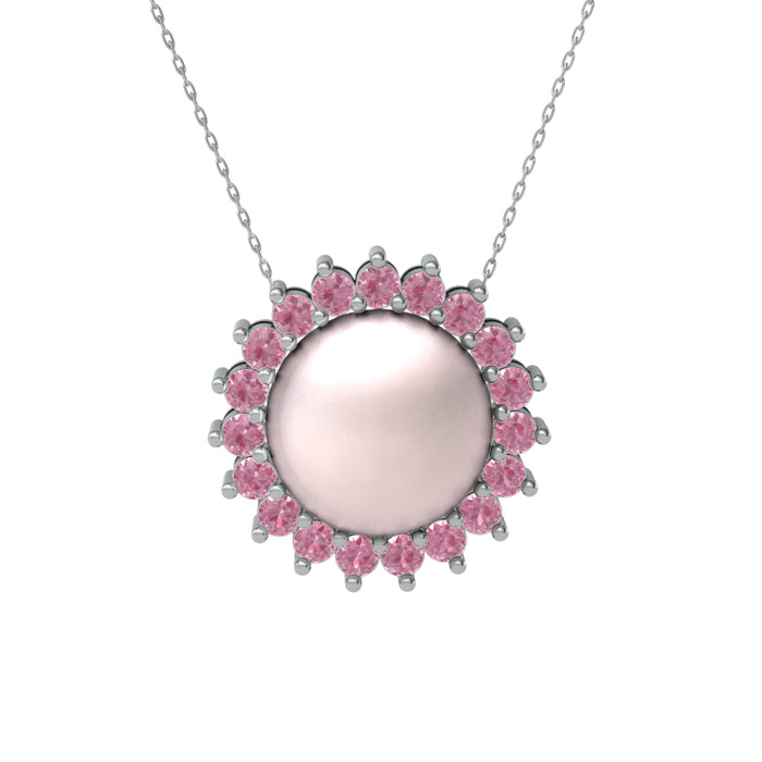 Pembe inci ve pembe kuvars 14 ayar beyaz altın kolye (40 cm beyaz altın rolo zincir)