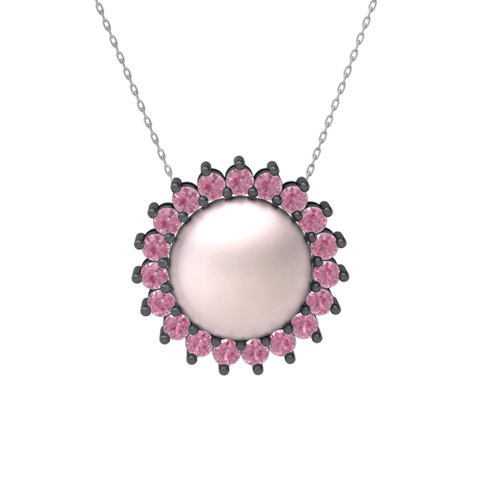 Pembe inci ve pembe kuvars 925 ayar siyah rodyum kaplama gümüş kolye (40 cm gümüş rolo zincir)