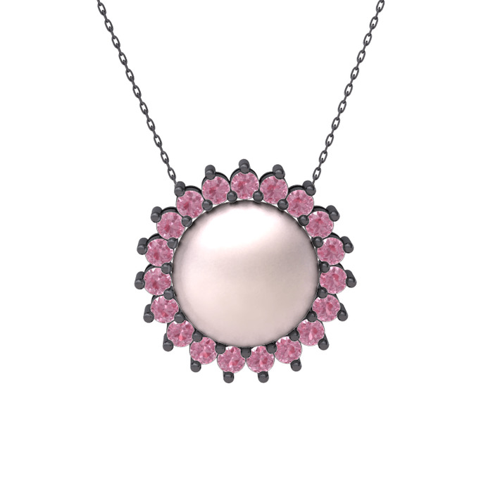 Pembe inci ve pembe kuvars 925 ayar siyah rodyum kaplama gümüş kolye (40 cm gümüş rolo zincir)