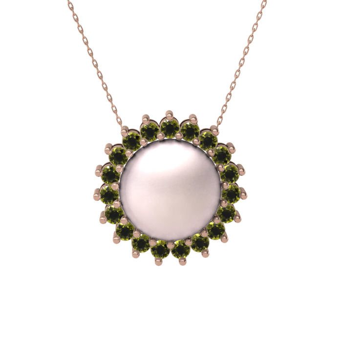 Pembe inci ve peridot 18 ayar rose altın kolye (40 cm rose altın rolo zincir)