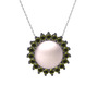 Pembe inci ve peridot 925 ayar siyah rodyum kaplama gümüş kolye (40 cm gümüş rolo zincir)