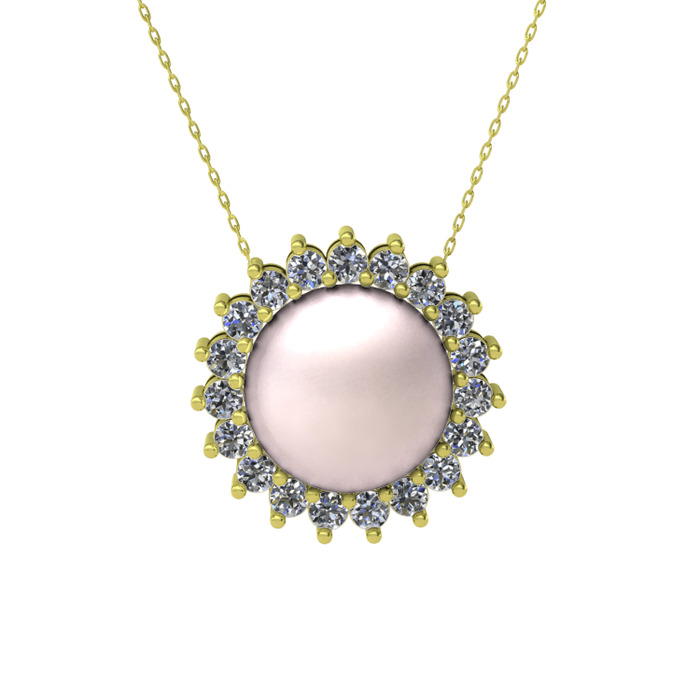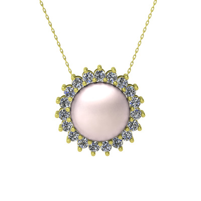 Pembe inci ve pırlanta 8 ayar altın kolye (0.285 karat, 40 cm altın rolo zincir)
