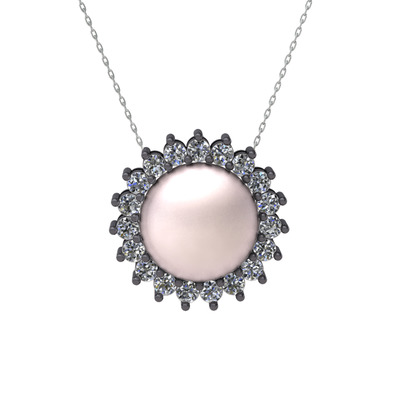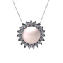 Pembe inci ve pırlanta 925 ayar siyah rodyum kaplama gümüş kolye (0.285 karat, 40 cm beyaz altın rolo zincir)
