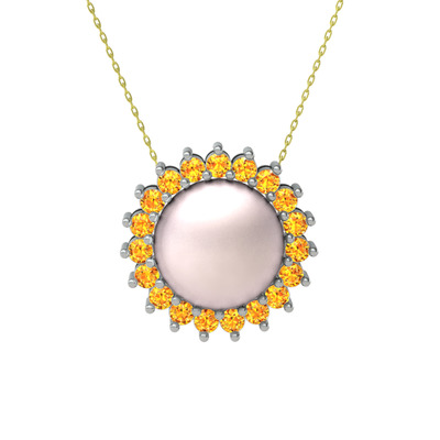 Pembe inci ve sitrin 8 ayar beyaz altın kolye (40 cm altın rolo zincir)
