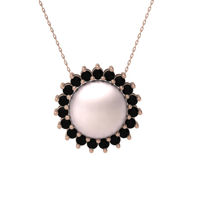Pembe inci ve siyah zirkon 18 ayar rose altın kolye (40 cm rose altın rolo zincir)