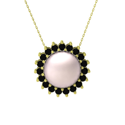 Pembe inci ve siyah zirkon 8 ayar altın kolye (40 cm altın rolo zincir)