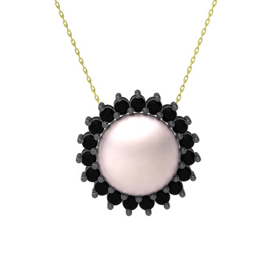 Pembe inci ve siyah zirkon 925 ayar siyah rodyum kaplama gümüş kolye (40 cm altın rolo zincir)