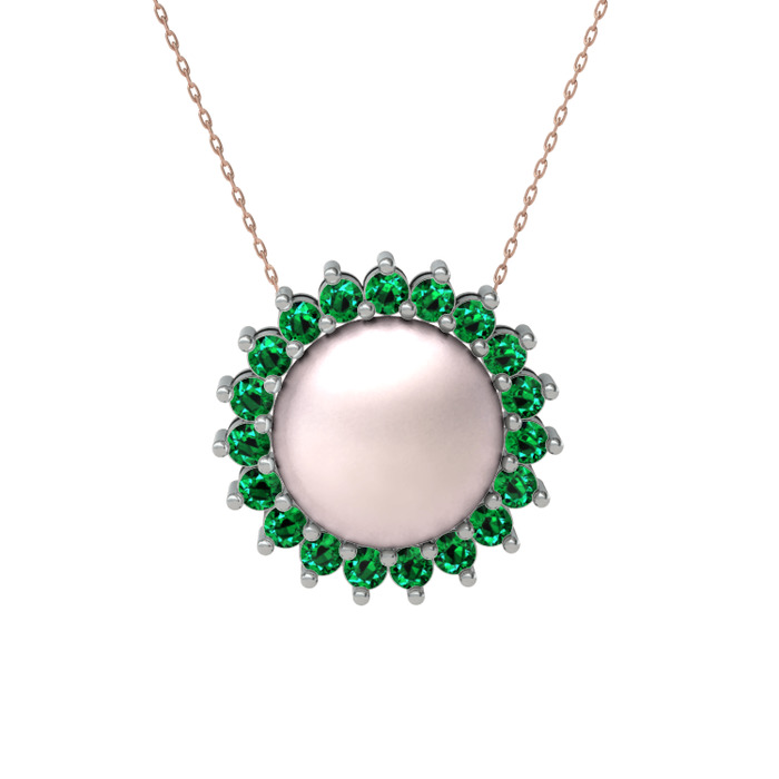 Pembe inci ve yeşil kuvars 14 ayar beyaz altın kolye (40 cm gümüş rolo zincir)