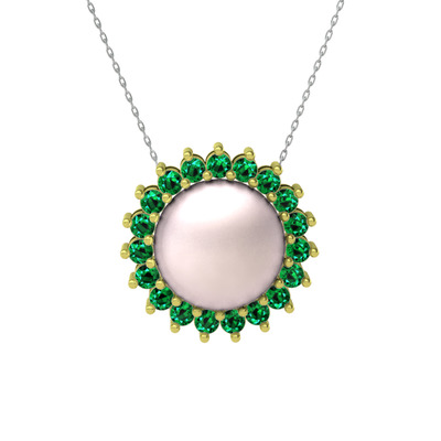 Pembe inci ve yeşil kuvars 18 ayar altın kolye (40 cm beyaz altın rolo zincir)