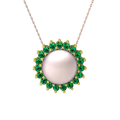Pembe inci ve yeşil kuvars 8 ayar altın kolye (40 cm rose altın rolo zincir)