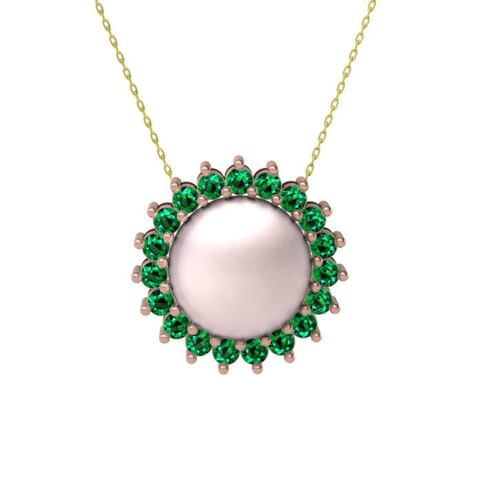 Pembe inci ve yeşil kuvars 925 ayar rose altın kaplama gümüş kolye (40 cm altın rolo zincir)