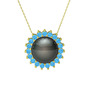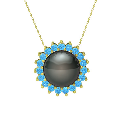 Siyah inci ve akuamarin 18 ayar altın kolye (40 cm altın rolo zincir)