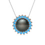 Siyah inci ve akuamarin 8 ayar rose altın kolye (40 cm gümüş rolo zincir)