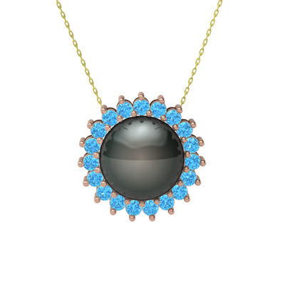 Siyah inci ve akuamarin 925 ayar rose altın kaplama gümüş kolye (40 cm altın rolo zincir)
