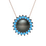 Siyah inci ve akuamarin 925 ayar siyah rodyum kaplama gümüş kolye (40 cm gümüş rolo zincir)