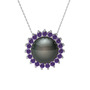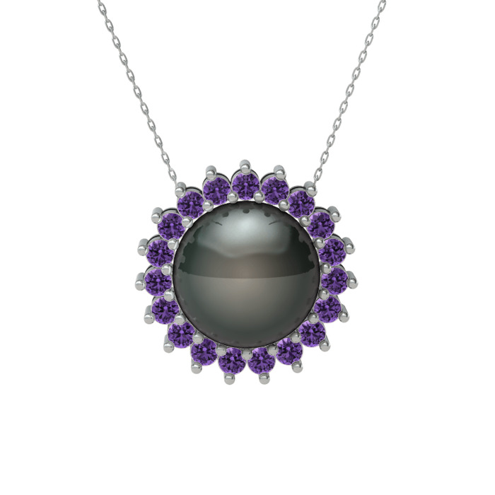 Siyah inci ve ametist 18 ayar beyaz altın kolye (40 cm beyaz altın rolo zincir)