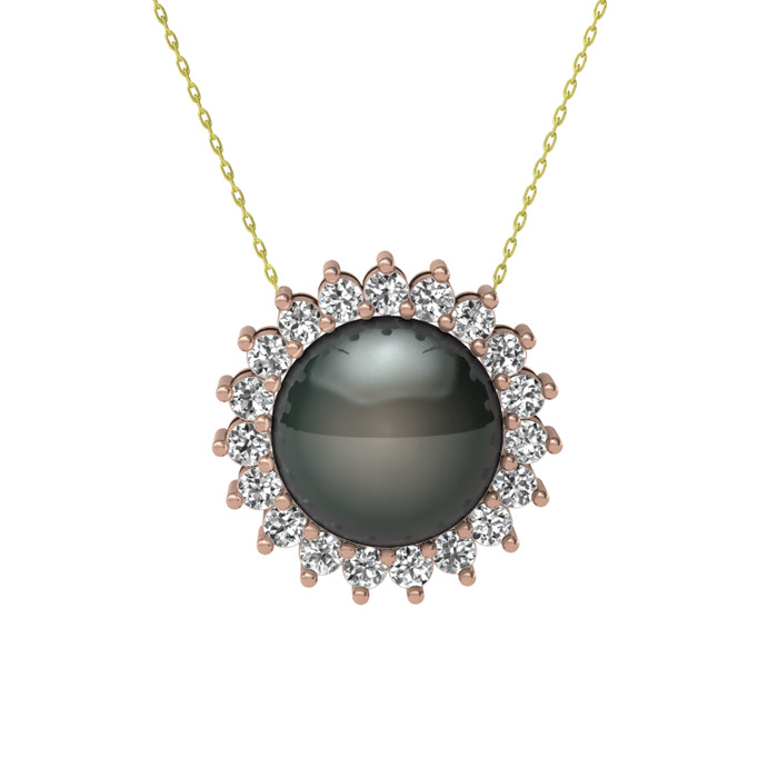 Siyah inci ve beyaz zirkon 18 ayar rose altın kolye (40 cm altın rolo zincir)