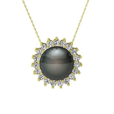 Siyah inci ve beyaz zirkon 8 ayar altın kolye (40 cm altın rolo zincir)