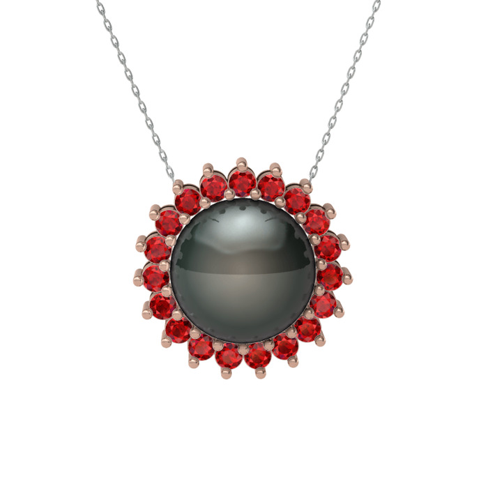 Siyah inci ve garnet 14 ayar rose altın kolye (40 cm beyaz altın rolo zincir)