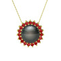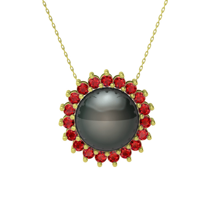 Siyah inci ve garnet 18 ayar altın kolye (40 cm altın rolo zincir)