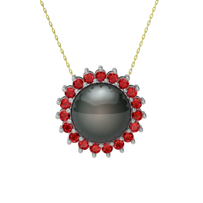 Siyah inci ve garnet 8 ayar beyaz altın kolye (40 cm altın rolo zincir)