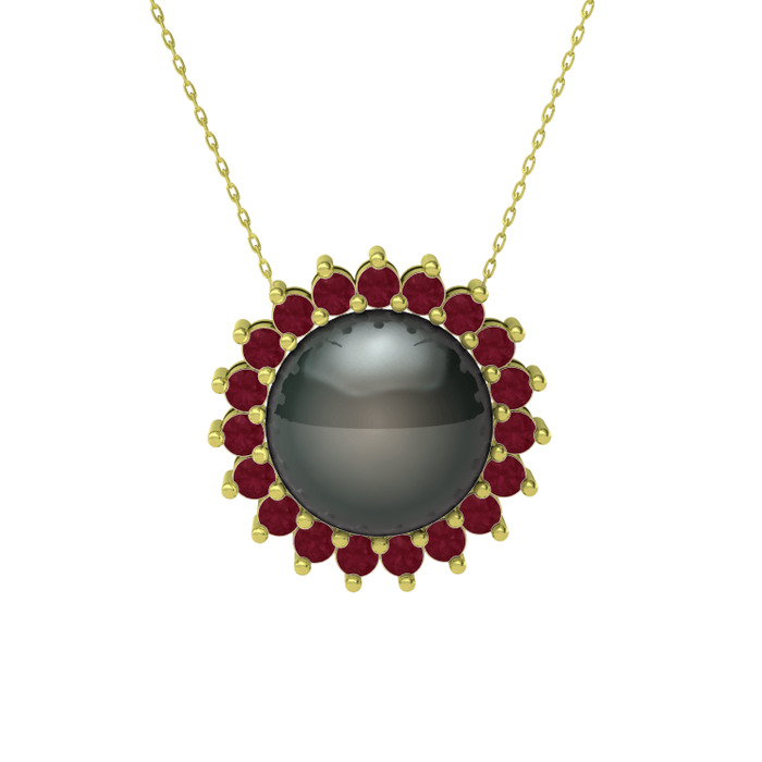 Siyah inci ve kök yakut 18 ayar altın kolye (40 cm altın rolo zincir)