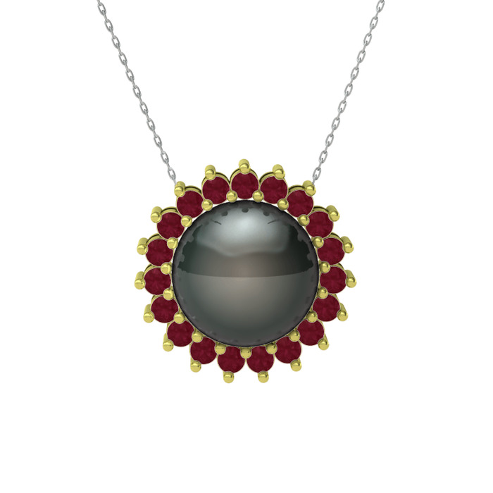 Siyah inci ve kök yakut 8 ayar altın kolye (40 cm beyaz altın rolo zincir)