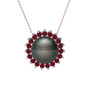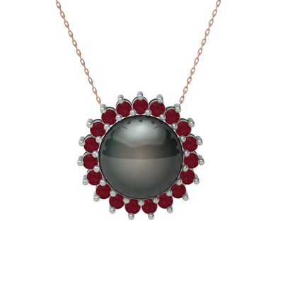 Siyah inci ve kök yakut 8 ayar beyaz altın kolye (40 cm rose altın rolo zincir)