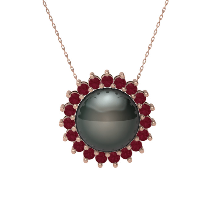 Siyah inci ve kök yakut 925 ayar rose altın kaplama gümüş kolye (40 cm rose altın rolo zincir)